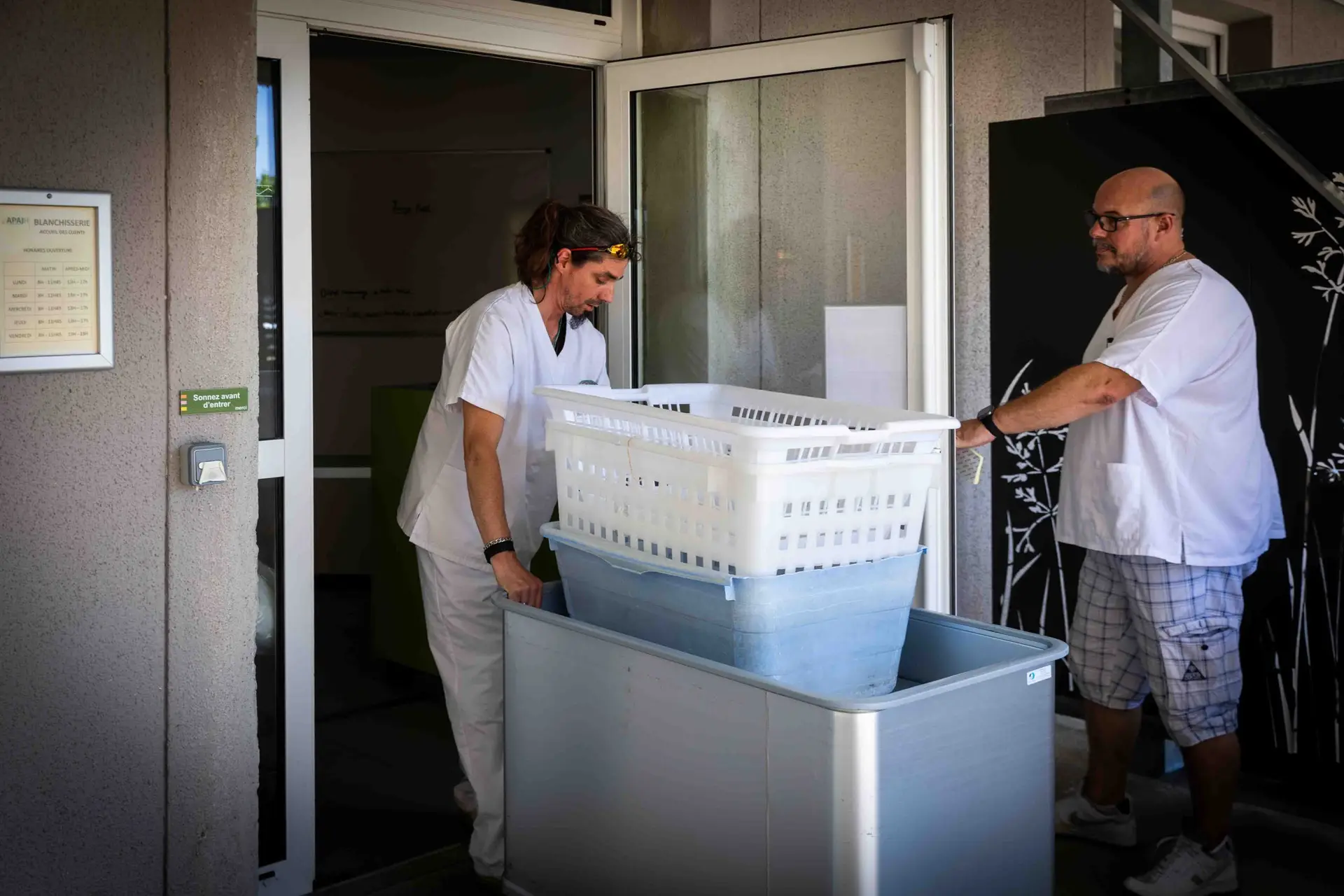 Réception linge sale, lavage, séchage, repassage calandre, fers et mannequin, pliage, logistique, livraison, accueil clients.